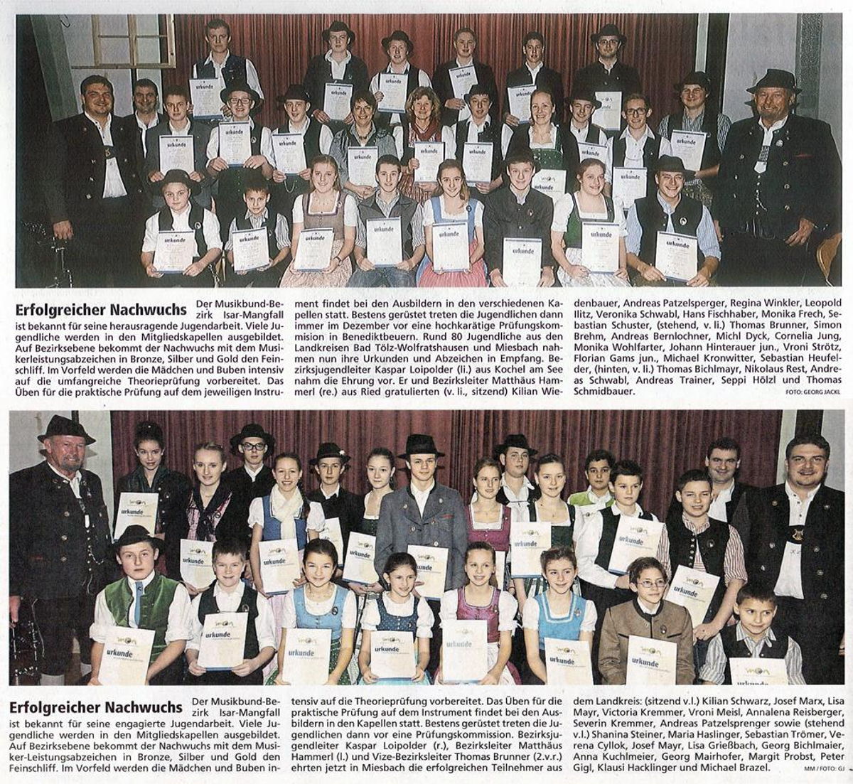 Die Verleihung der Urkunden fand in einem feierlichen Rahmen im Bräuwirt in Miesbach statt. Ein kleine Besetzung der Jugendkapelle der Blaskapelle Unterdarching, unter der Leitung von Hubert Huber, umrahmte die Ehrung beim Bräuwirt in Miesbach musikalisch.